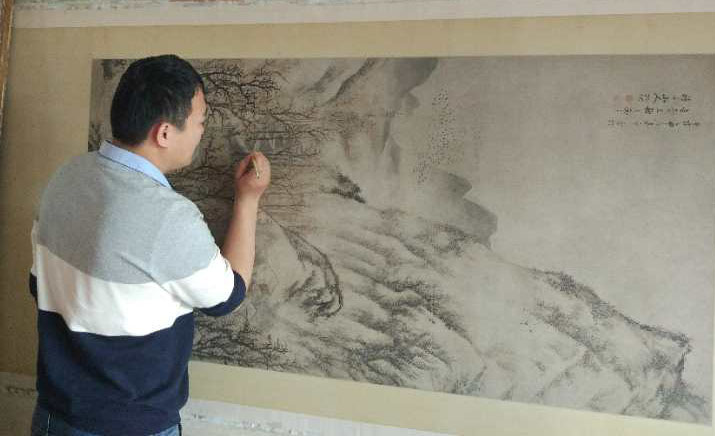 在浮躁高速的现在社会里,这些能沉下心、慢节奏的匠人们无疑是特别的存在。下面上一些宇艺斋部分年轻师傅修复的六尺大山水。